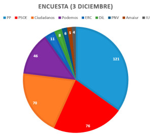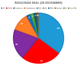 En primer lugar, os vamos a hablar del resultado de las elecciones. En el episodio número 168, que publicamos a principios de diciembre de 2015, os hablamos de las elecciones que había el día 20. En estas elecciones los españoles votamos para elegir un nuevo presidente para nuestro país. En el episodio os dijimos que la situación era complicada y que no sabíamos qué iba a pasar. Y efectivamente, así ha sido. Hemos adjuntado un par de gráficos para que veáis los resultados.